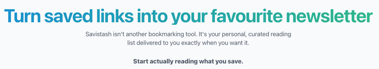 So that’s why I created savistash.com… for myself. To help me save links, select which ones I want to read next and then add those to my own personal weekly newsletter.