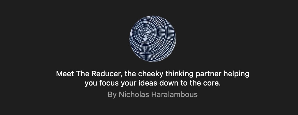 If you’re a product manager, indie hacker, founder or just a person with an idea then I’d like you to meet The Reducer - the cheeky thinking partner.